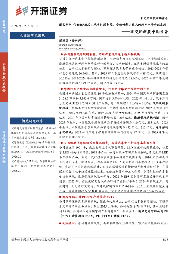【开源证券】【202602】北交所新股申购报告:从车灯到电控,专精特新小巨人的汽车电子升级之路-33页