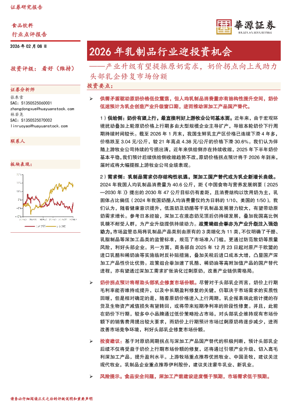 【华源证券】【202602】2026年乳制品行业迎投资机会:产业升级有望提振原奶需求,奶价拐点向上或助力头部乳企修复市场份额-2页