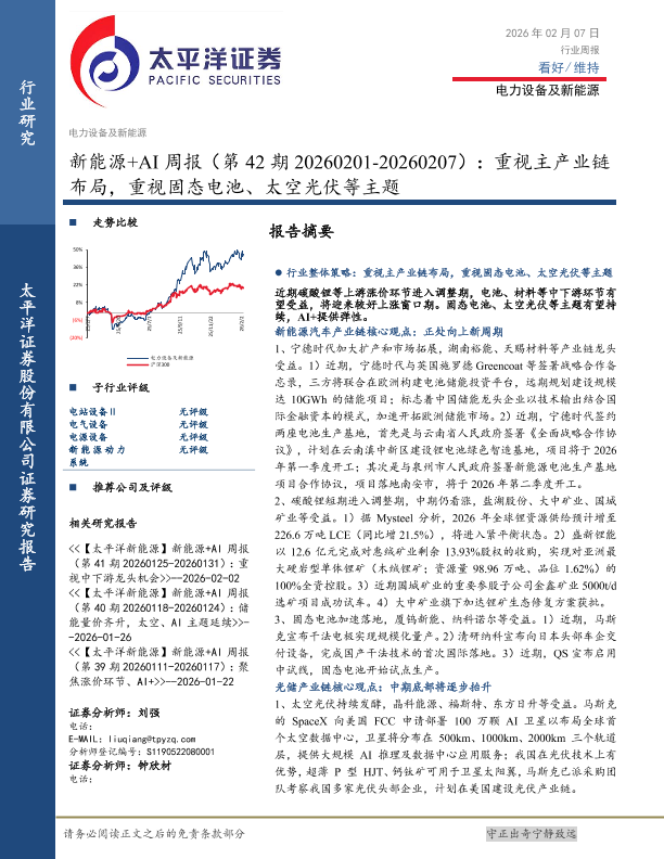【太平洋证券】【202602】2026-02-08_太平洋_新能源+AI行业周报(第42期20260201-20260207):重视主产业链布局,重视固态电池、太空光伏等主题-21页