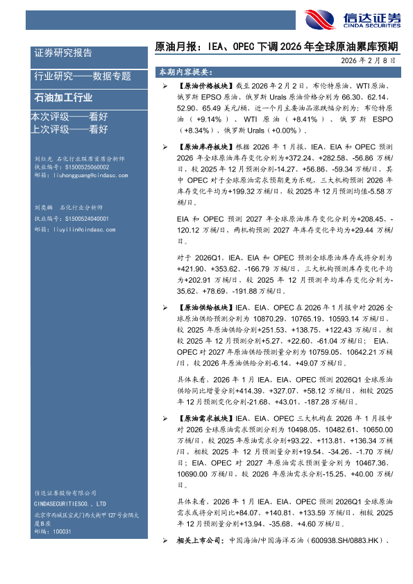 【信达证券】【202602】原油月报:IEA、OPEC下调2026年全球原油累库预期-25页