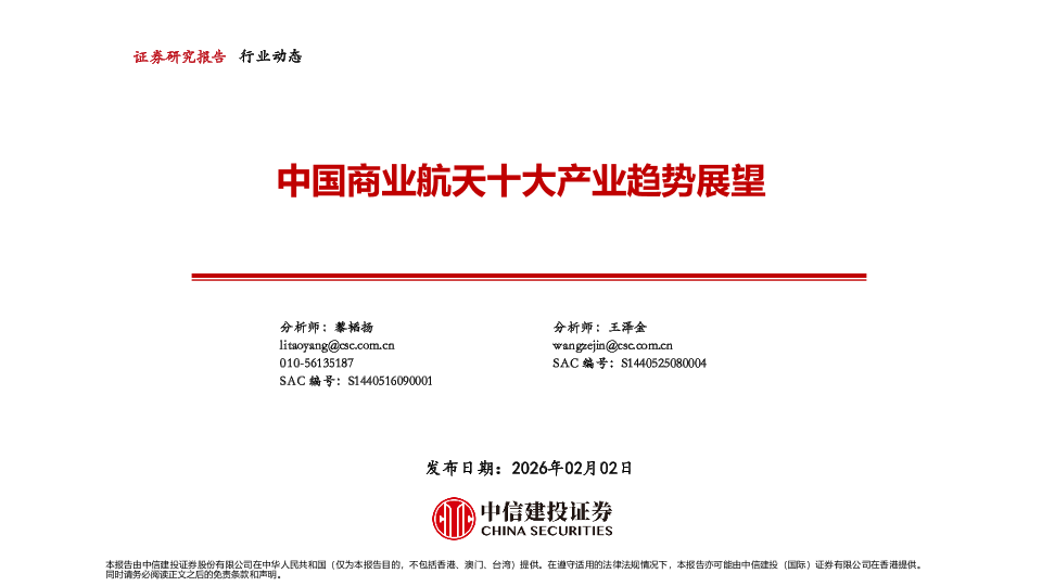 【中信建投证券】【202602】中国商业航天十大产业趋势展望-20页