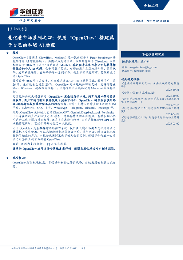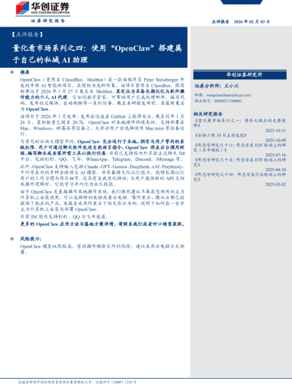 【华创证券】【202602】量化看市场系列之四:使用“OpenClaw”搭建属于自己的私域 AI助理-15页