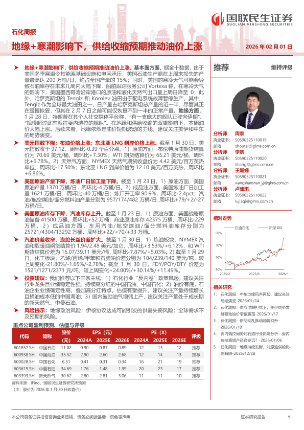 【国联民生证券】【202602】地缘+寒潮影响下,供给收缩预期推动油价上涨-28页