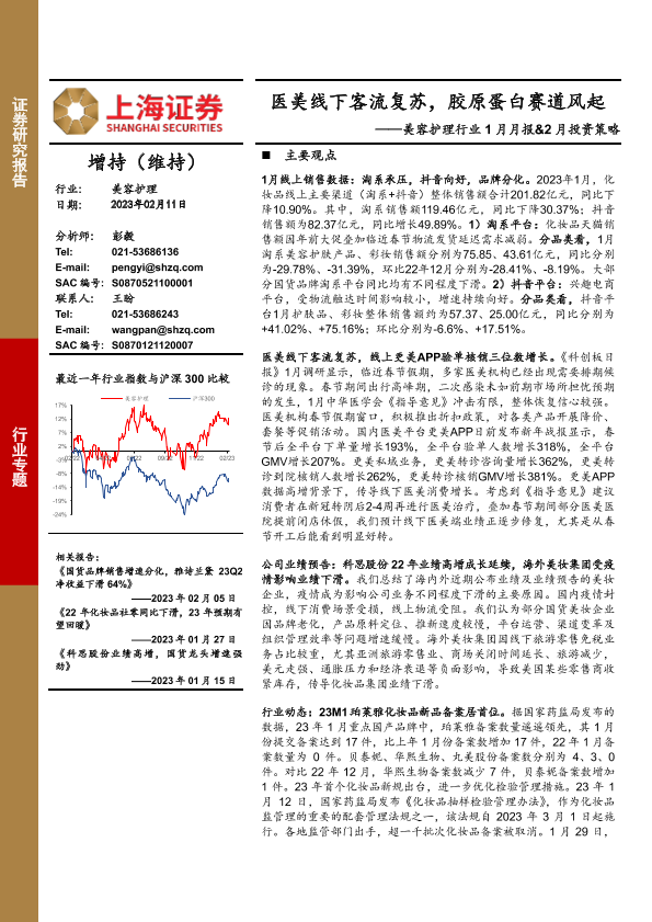 【上海证券】【20230211】美容护理行业1月月报&2月投资策略:医美线下客流复苏,胶原蛋白赛道风起-32页