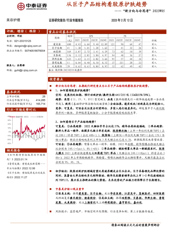 【中泰证券】【20230212】美容护理行业“新方向与冷思考”2023W05:从巨子产品结构看胶原护肤趋势-17页