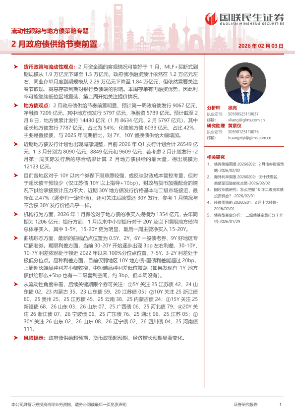 【国联民生证券】【202602】流动性跟踪与地方债策略专题:2月政府债供给节奏前置-21页