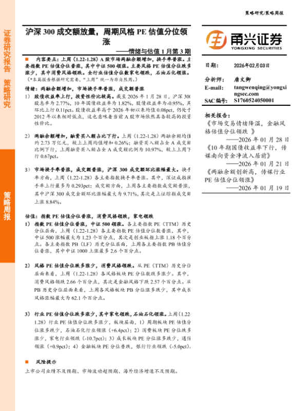 估值分析 市场情绪 周期行业 股市分析 PE估值