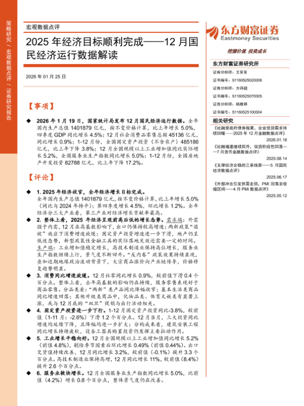 【东方财富证券】【202601】2025年经济目标顺利完成——12月国民经济运行数据解读-10页