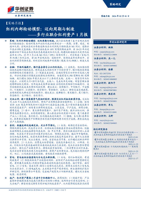 【华创证券】【202602】红利内部轮动模型:迈向周期与制造——多行业联合红利资产1月报-58页
