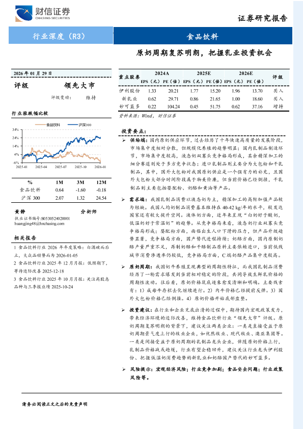 【财信证券】【202601】原奶周期复苏明朗,把握乳业投资机会-35页