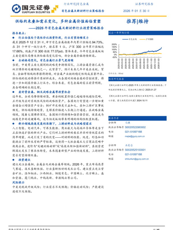 【国元证券】【2026】供给约束叠加需求变化,多种金属价值面临重塑——2026年有色金属及新材料行业投资策略报告-45页
