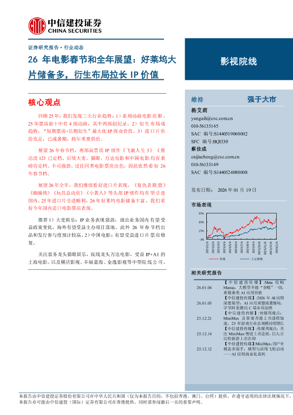 【中信建投证券】【2026】26年电影春节和全年展望:好莱坞大片储备多,衍生布局拉长IP价值-10页