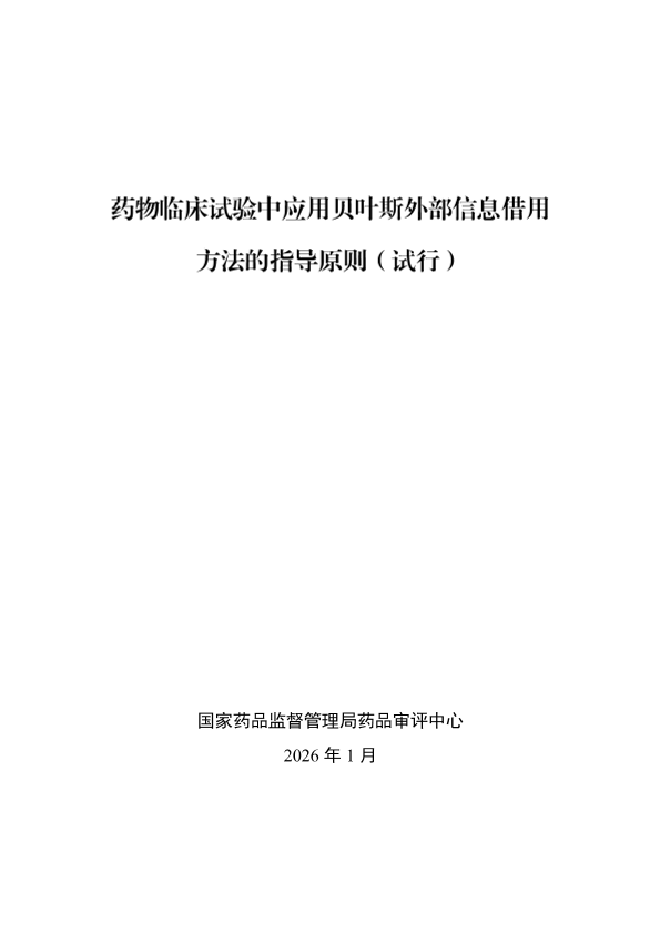 【国家药品监督管理局药品审评中心】【202601】药物临床试验中应用贝叶斯外部信息借用方法的指导原则(试行)-32页