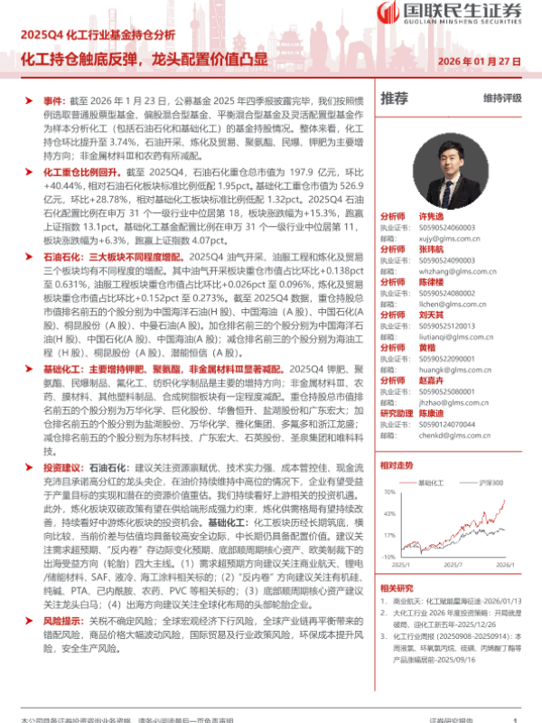 【国联民生证券】【202602】2025Q4化工行业基金持仓分析:化工持仓触底反弹,龙头配置价值凸显-16页