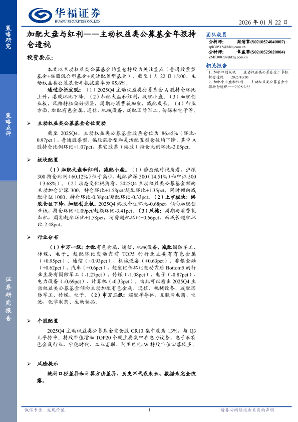 【华福证券】【2025】加配大盘与红利——主动权益类公募基金年报持仓透视-10页