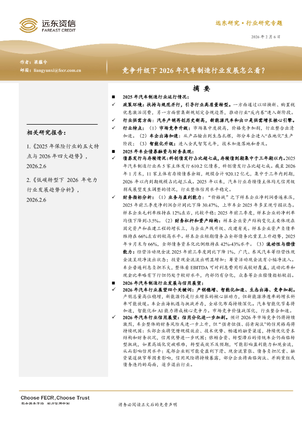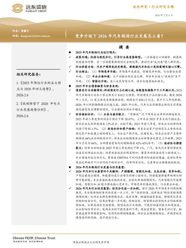 【远东资信】【202602】竞争升级下2026年汽车制造行业发展怎么看-13页