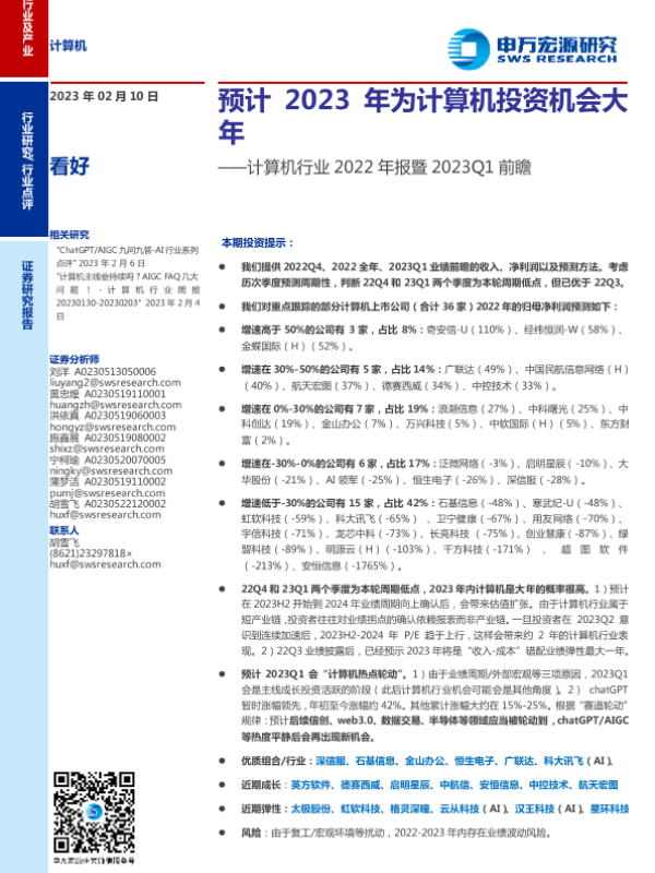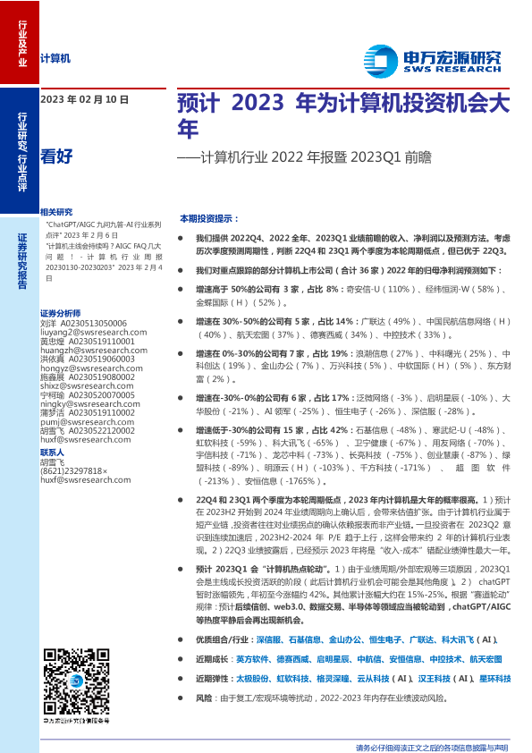 【申万宏源】【20230210】计算机行业2022年报暨2023Q1前瞻:预计2023年为计算机投资机会大年-15页