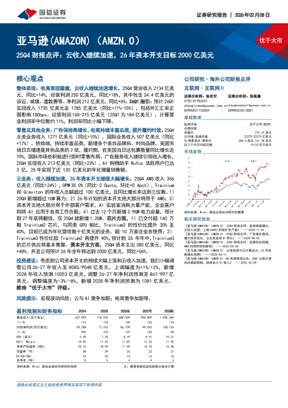 【国信证券】【202504】亚马逊(AMAZON)(AMZN.O)-25Q4财报点评:云收入继续加速,26年资本开支目标 2000亿美元-8页