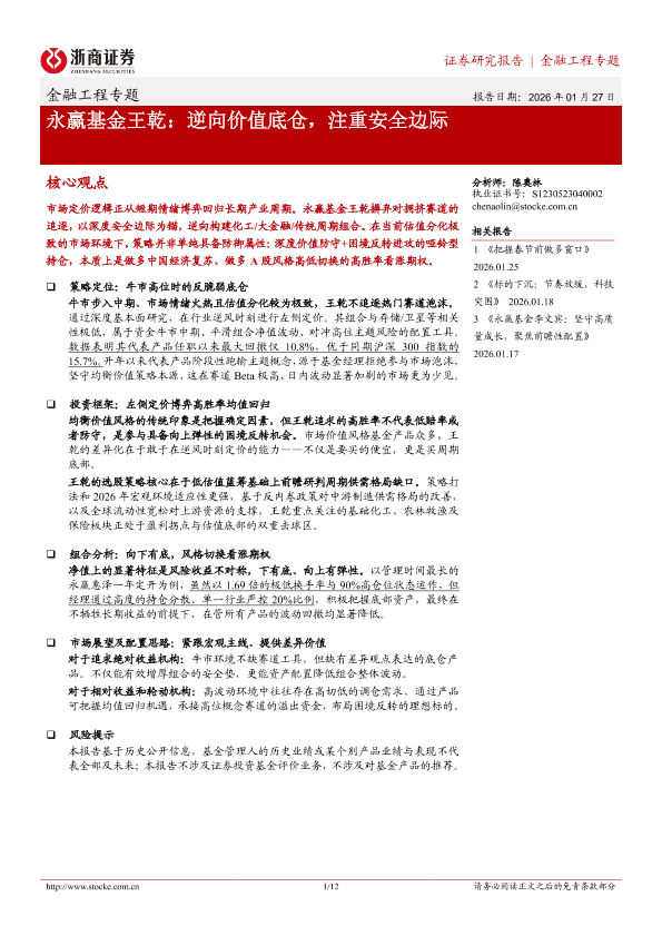 【浙商证券】【202601】永赢基金王乾_逆向价值底仓_注重安全边际-12页
