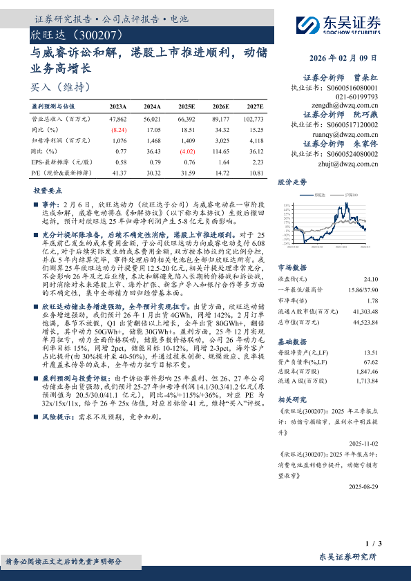 【东吴证券】【202602】与威睿诉讼和解,港股上市推进顺利,动储业务高增长-3页