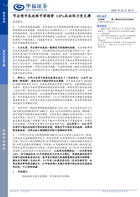 【华福证券】【202602】节后债市或延续节前趋势 1.8%或由阻力变支撑-9页