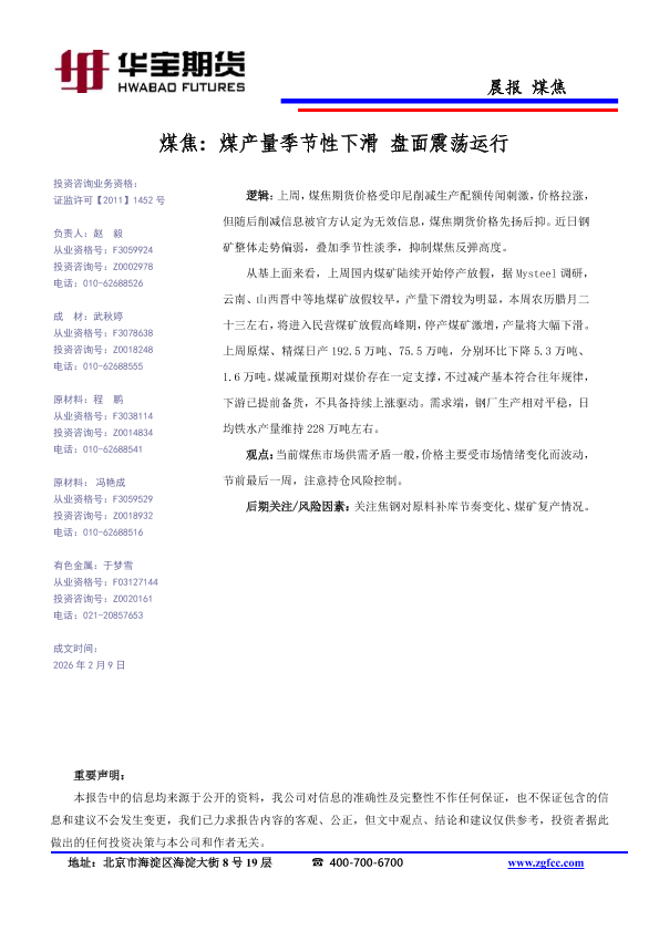 【华宝期货】【202602】煤焦_煤产量季节性下滑_盘面震荡运行-1页