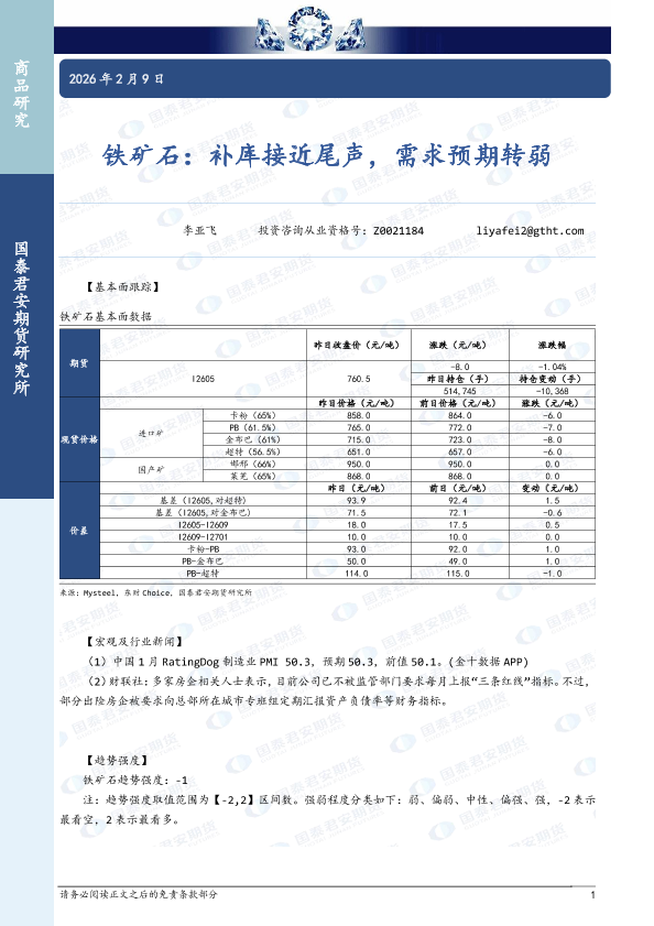 【国泰君安期货】【202602】铁矿石:补库接近尾声,需求预期转弱-2页