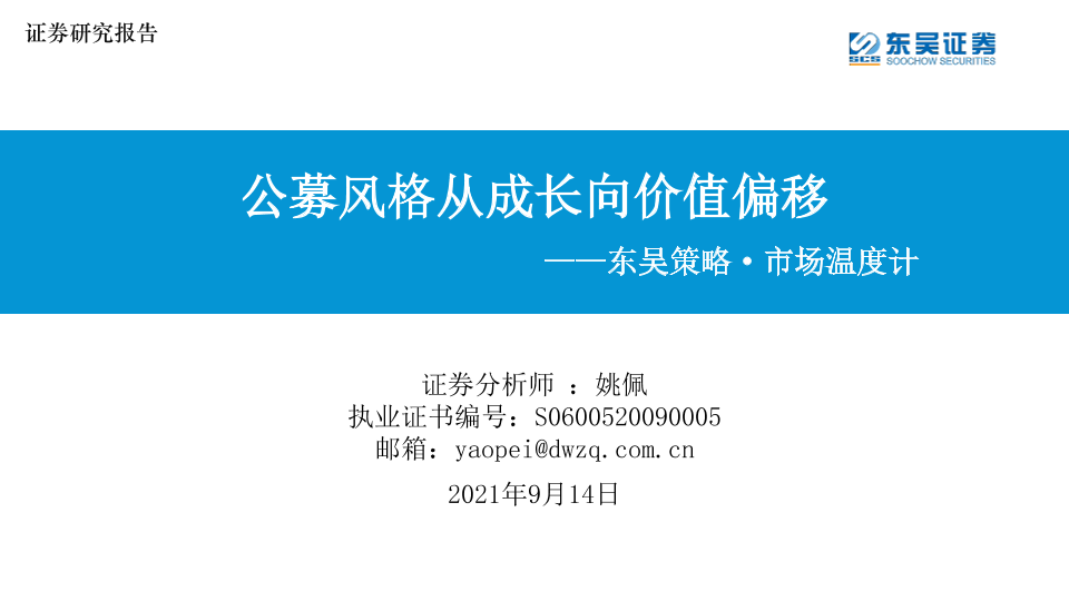 【东吴证券】【20210914】东吴策略·市场温度计:公募风格从成长向价值偏移-26页