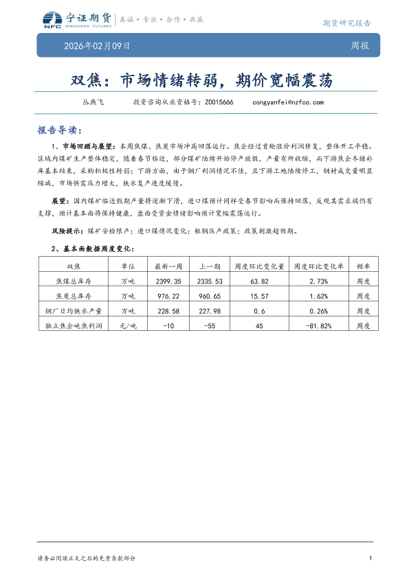 【宁证期货】【202602】双焦:市场情绪转弱,期价宽幅震荡-5页