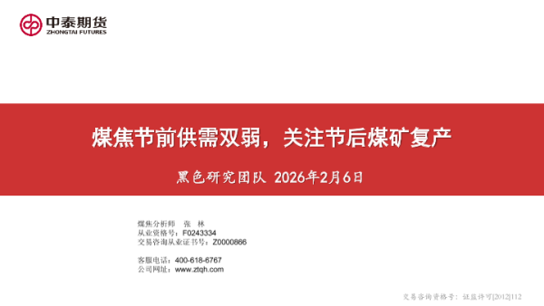 【中泰期货】【202602】煤焦节前供需双弱,关注节后煤矿复产-29页