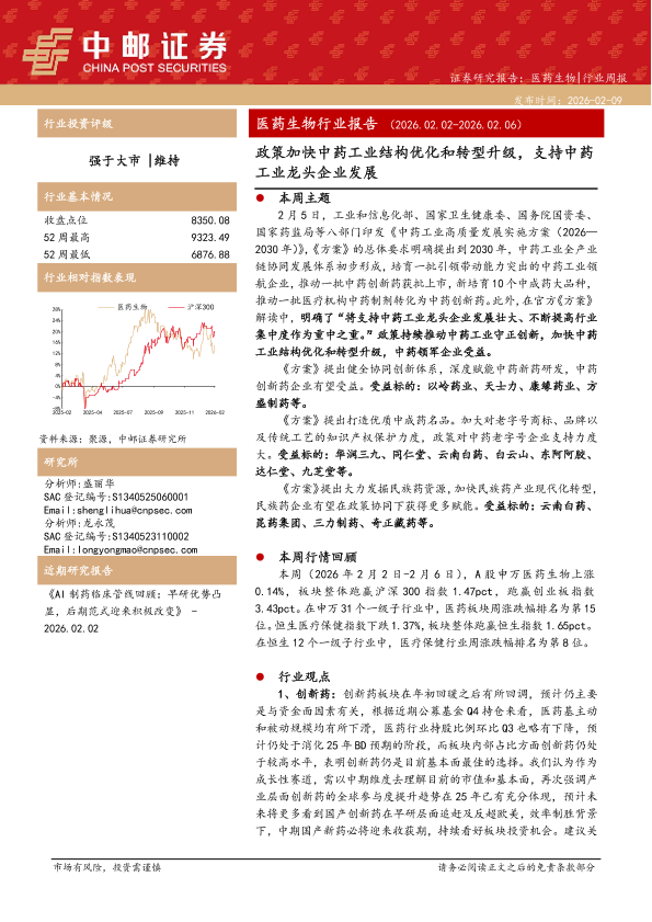 【中邮证券】【202602】政策加快中药工业结构优化和转型升级,支持中药工业龙头企业发展-15页