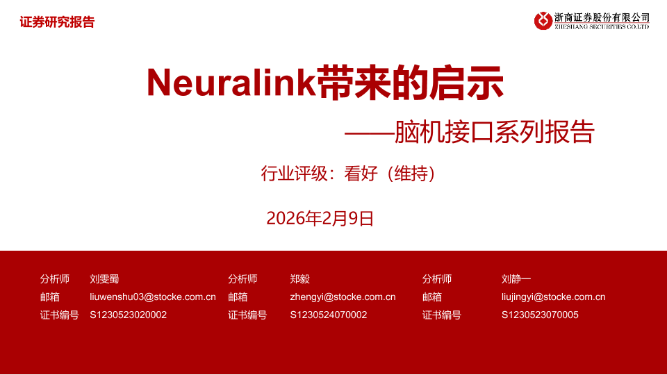 【浙商证券】【202602】Neuralink带来的启示——脑机接口系列报告-38页