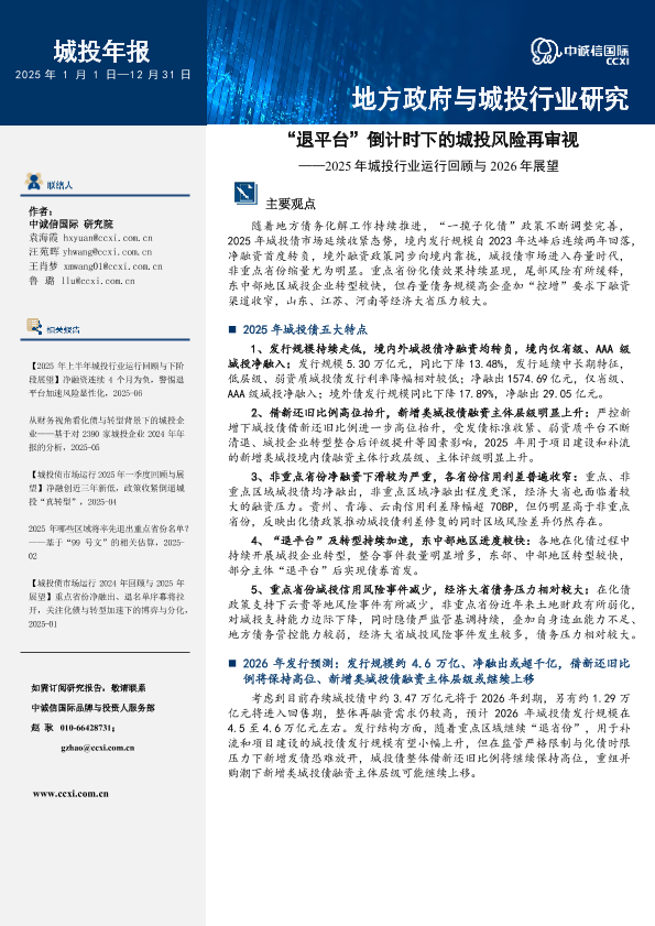 退平台 化债政策 城投债 信用风险 转型分化