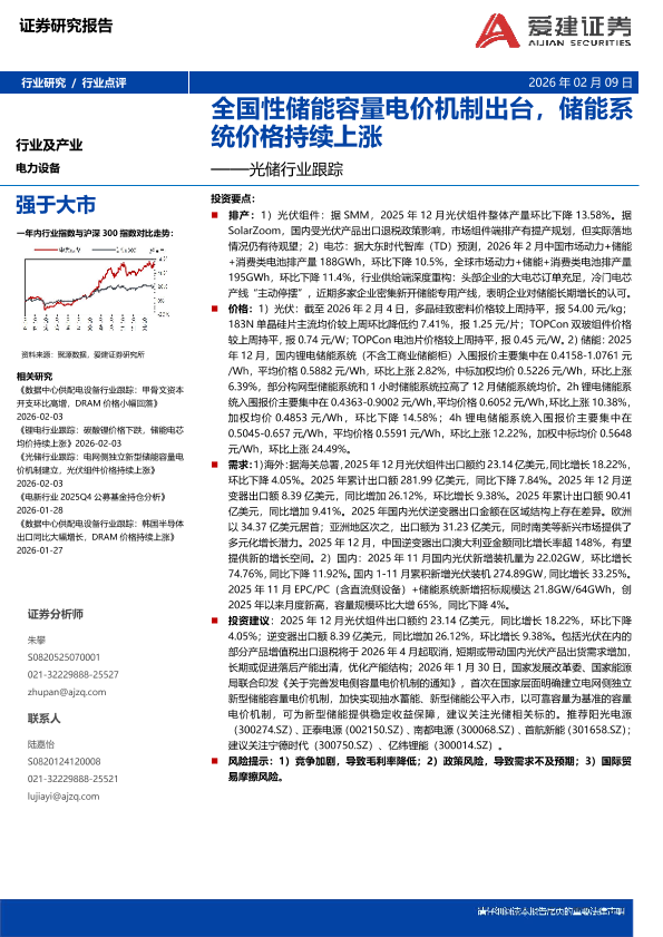 【爱建证券】【202602】光储行业跟踪:全国性储能容量电价机制出台,储能系统价格持续上涨-9页