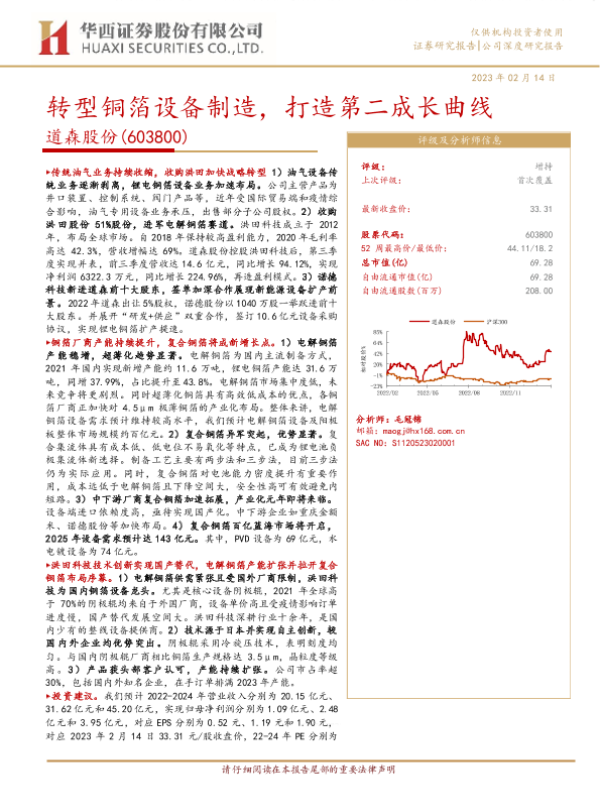 【华西证券】【20230214】转型铜箔设备制造,打造第二成长曲线-22页