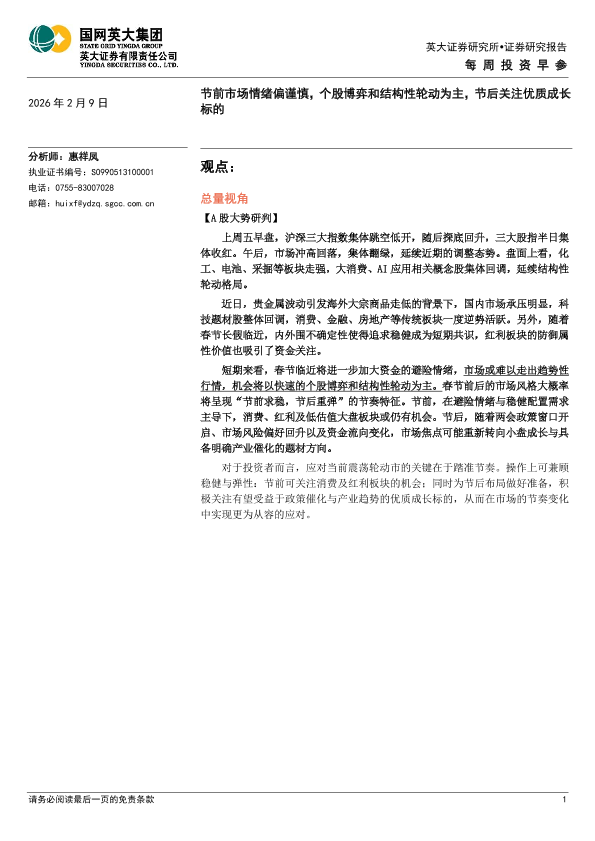 【英大证券】【202602】节前市场情绪偏谨慎,个股博弈和结构性轮动为主,节后关注优质成长标的-5页