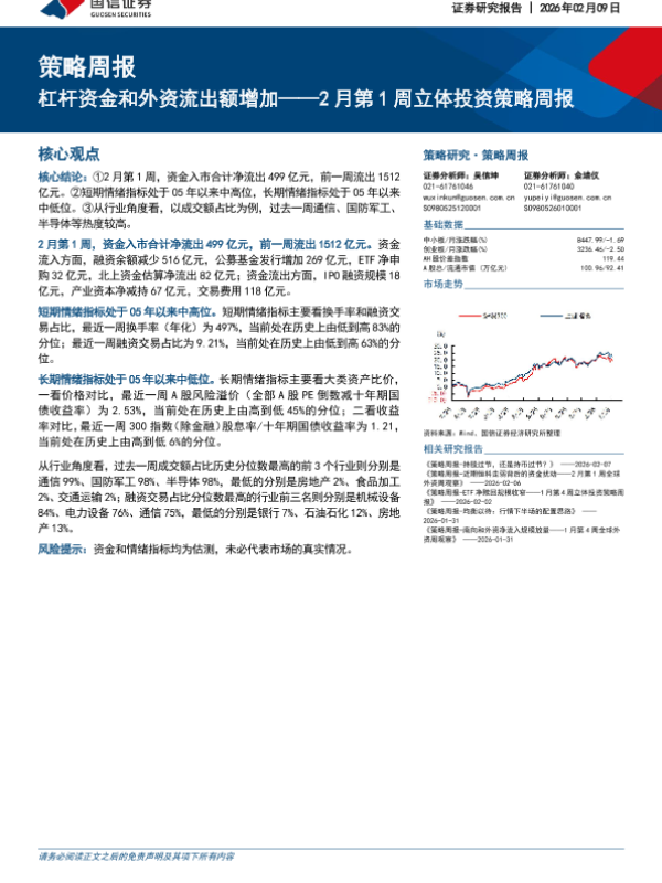 【国信证券】【202602】2月第1周立体投资策略周报:杠杆资金和外资流出额增加-10页