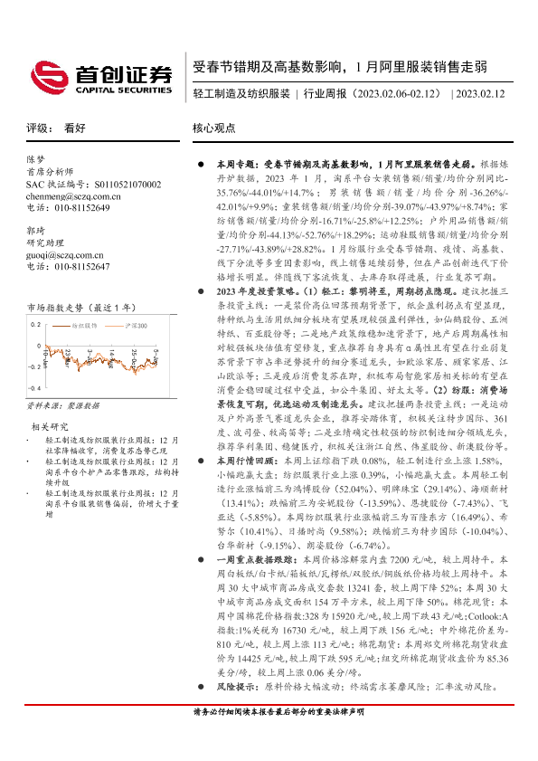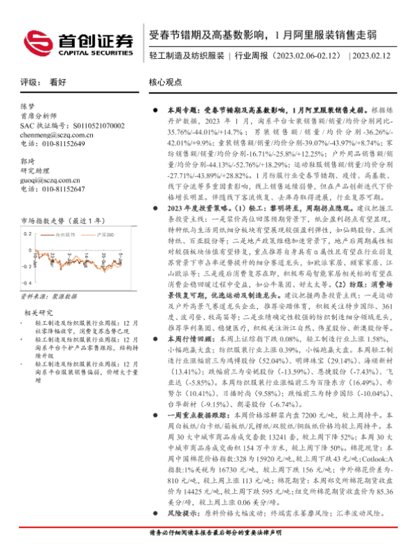 【首创证券】【20230212】轻工制造及纺织服装行业周报:受春节错期及高基数影响,1月阿里服装销售走弱-19页