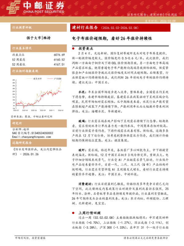 【中邮证券】【202602】建筑材料行业周报:电子布涨价超预期,看好26年涨价持续性-7页
