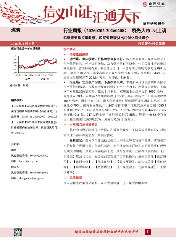 【山西证券】【202602】煤炭行业周报(20260202-20260208)领先大市-A(上调)临近春节供应量收缩,印尼暂停现货出口催化海外煤价-16页