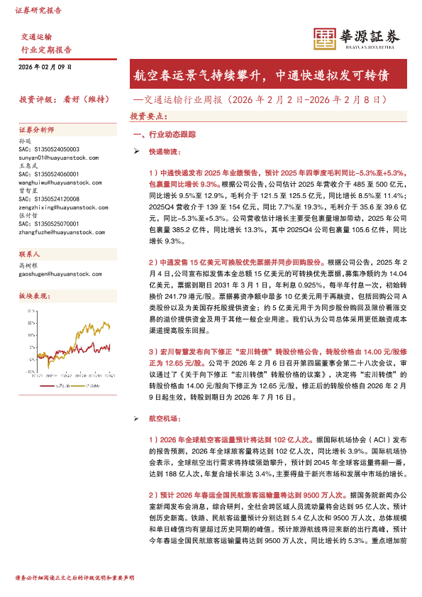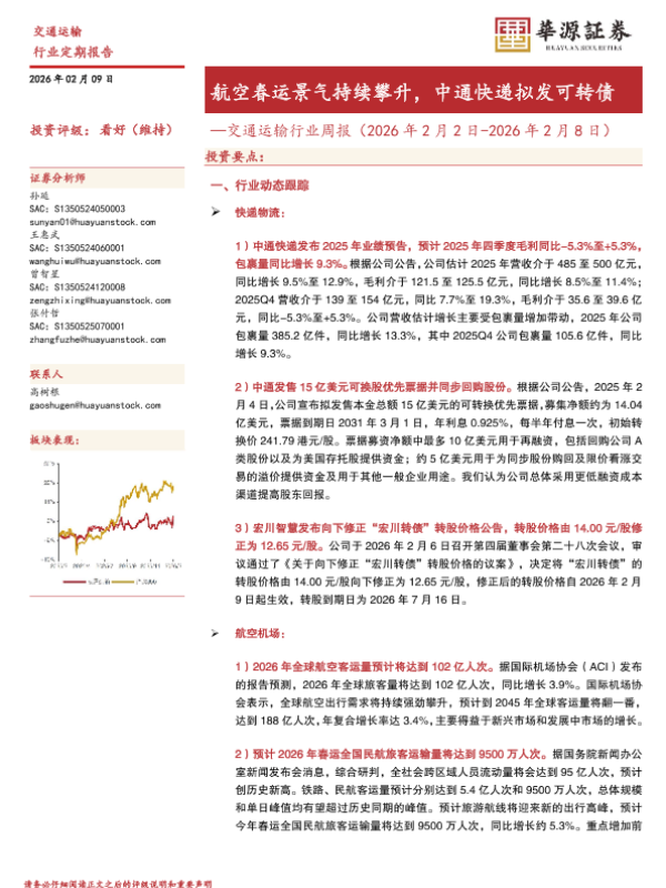 【华源证券】【202602】航空春运景气持续攀升,中通快递拟发可转债-17页
