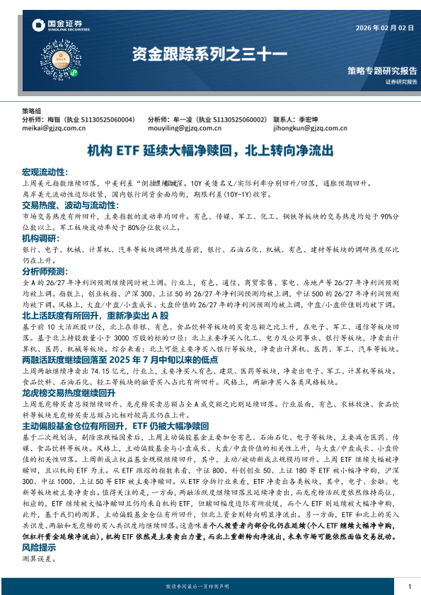 【国金证券】【202601】资金跟踪系列之三十一:机构ETF延续大幅净赎回,北上转向流出-260202-国金证券-32页.pdf-32页