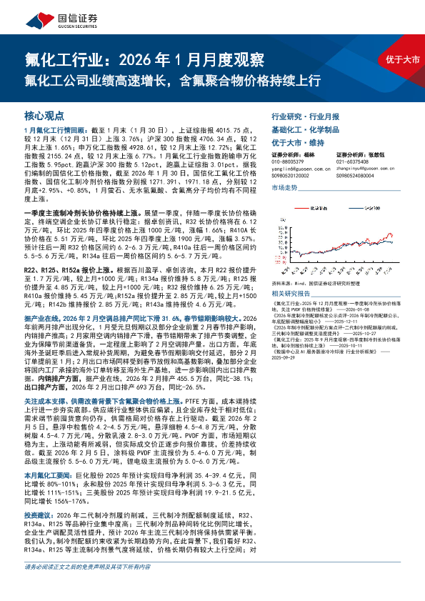 【国信证券】【202601】氟化工行业:2026年1月月度观察-26页