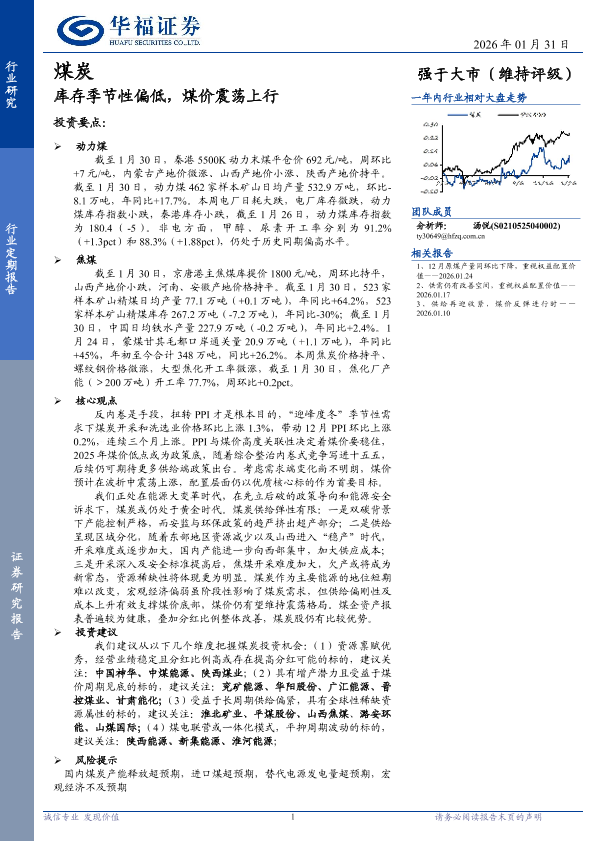 【华福证券】【202601】煤炭行业定期报告:库存季节性偏低,煤价震荡上行-28页