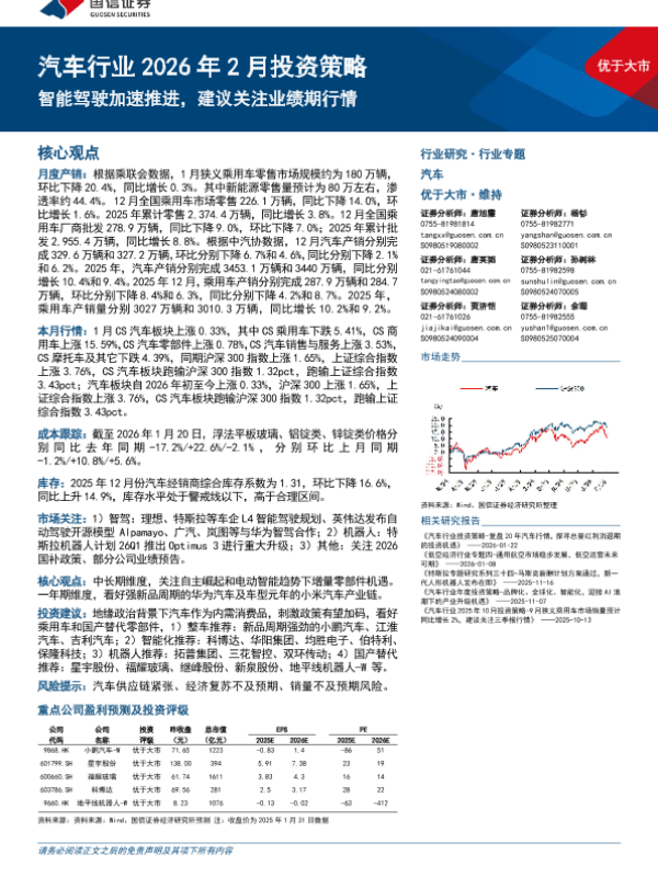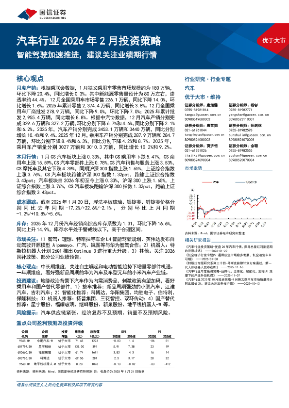 【国信证券】【202602】汽车行业2026年2月投资策略:智能驾驶加速推进,建议关注业绩期行情-33页