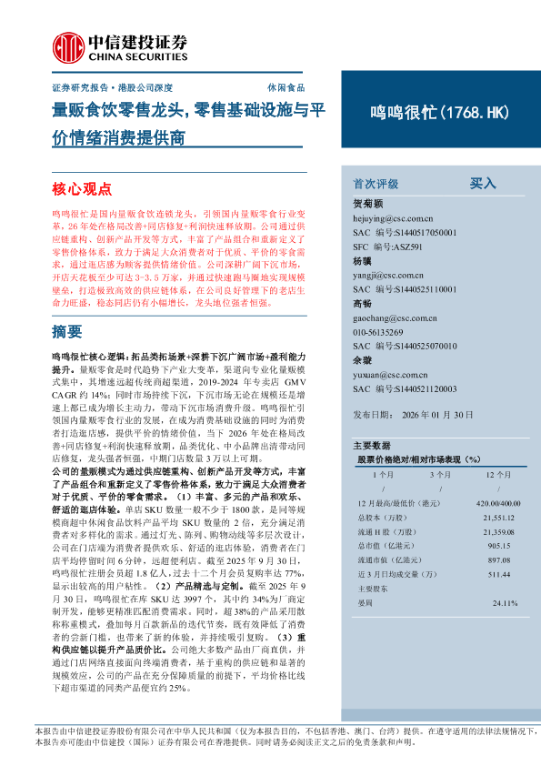 【中信建投证券】【202601】鸣鸣很忙(01768.HK)量贩食饮零售龙头,零售基础设施与平价情绪消费提供商-35页