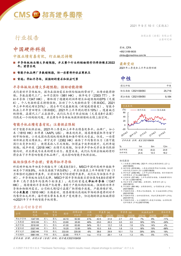 【招商证券国际】【20210910】中国硬件科技行业中报业绩有喜有忧,行业缺芯持续-28页