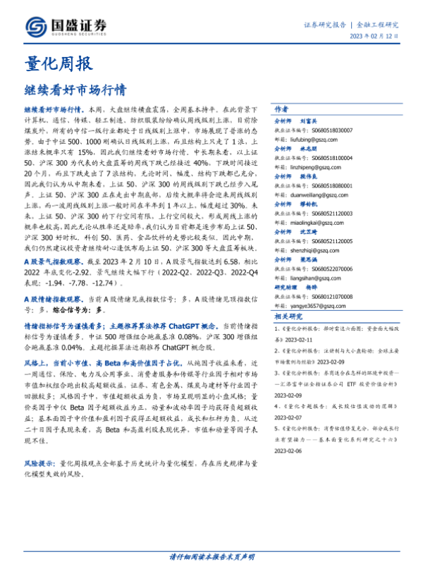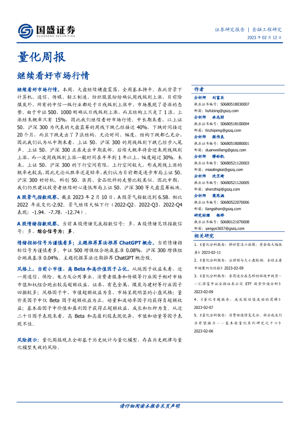 【国盛证券】【20230212】量化周报:继续看好市场行情-24页