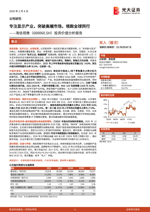 【光大证券】【202602】海信视像(600060.SH)投资价值分析报告:专注显示产业,突破高端市场,领跑全球同行-44页
