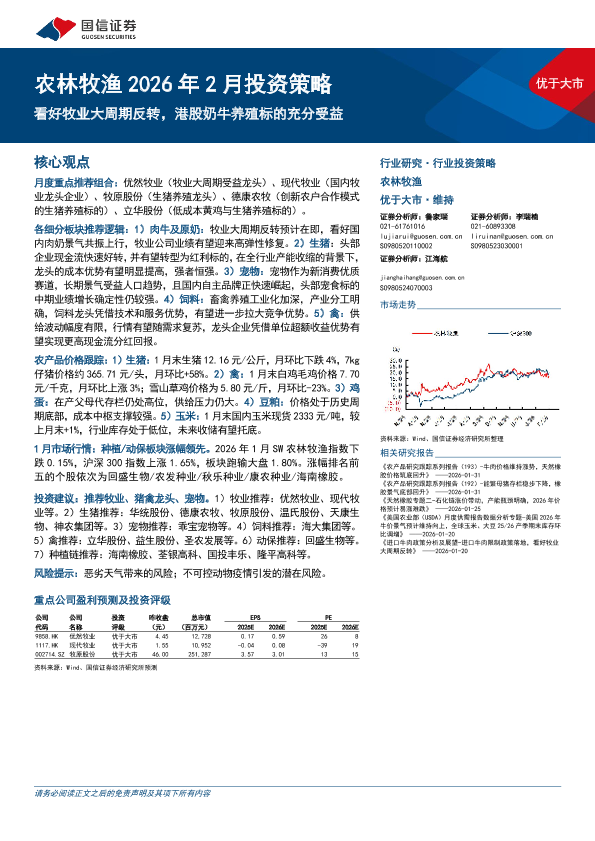 【国信证券】【202602】农林牧渔 2026年 2月投资策略看好牧业大周期反转,港股奶牛养殖标的充分受益-27页